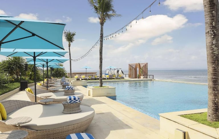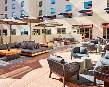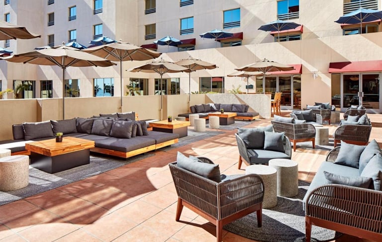 Delivering stylish poolside and outdoor dining furniture for Le Merigot Hotel, designed for durability, comfort, and aesthetic appeal in every outdoor setting.